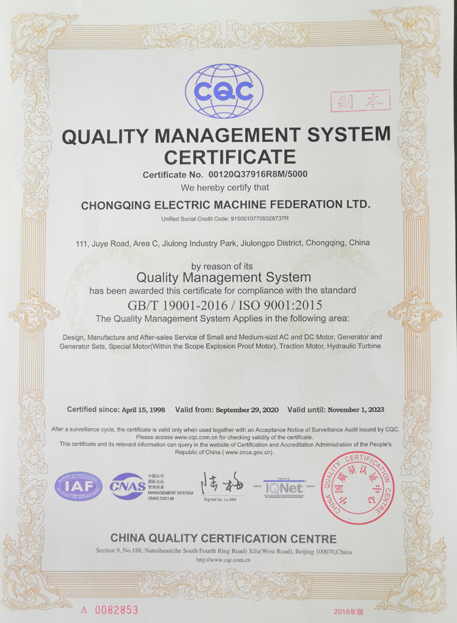 公司傳承了原重慶電機(jī)廠(chǎng)先進(jìn)的電機(jī)制造技術(shù)和管理經(jīng)驗(yàn),建立了按現(xiàn)代企業(yè)制度管理方式的法人治理機(jī)制,是國(guó)家重點(diǎn)企業(yè)及研發(fā)、生產(chǎn)和銷(xiāo)售各型交流異步電動(dòng)機(jī)、交流同步電動(dòng)機(jī)、直流電動(dòng)機(jī)、汽車(chē)電機(jī)、軌道牽引電機(jī)、水輪發(fā)電機(jī)及發(fā)電機(jī)組和其它特殊電機(jī)的專(zhuān)業(yè)制造廠(chǎng)家。